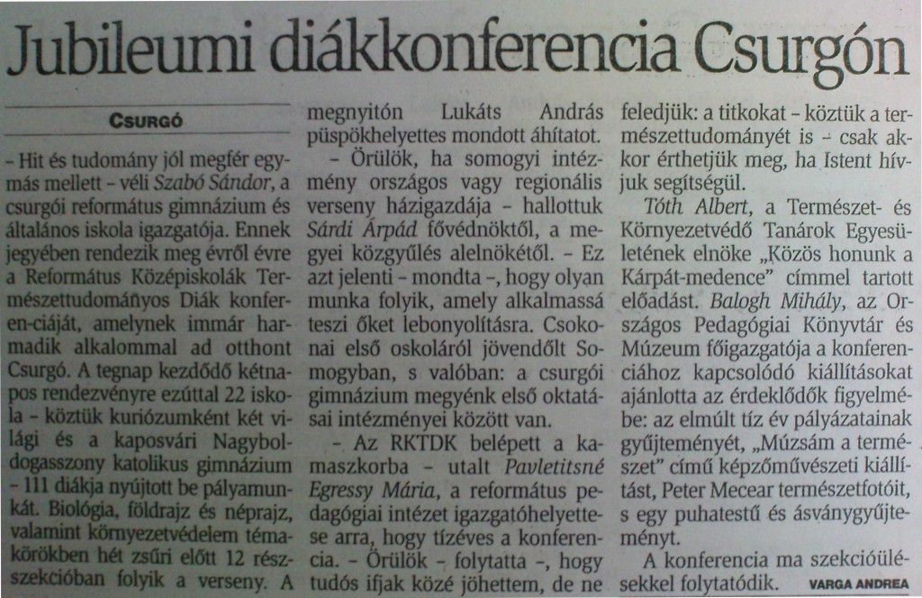 Az RKTDK-nak immár harmadik alkalommal ad otthont Csurgó. Forrás Somogyi Hírlap Szerző Varga Andrea Megjelenés dátuma 2004. 03. 20. Rögzítés dátuma 2011. 03. 27.