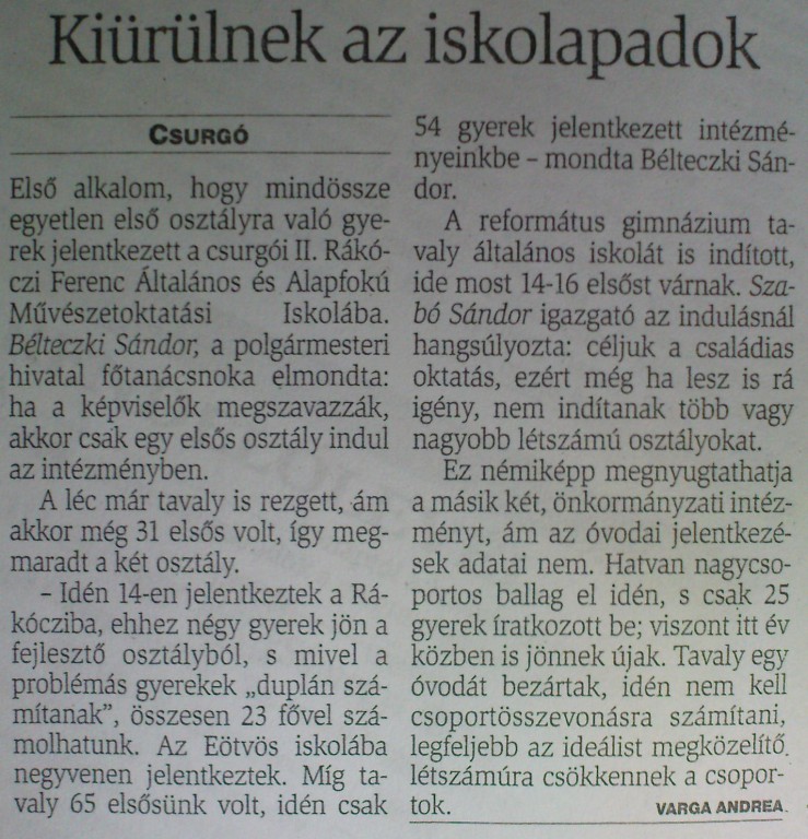A csurgói Református Gimnázium most 14-16 elsőst vár tavaly indított általános iskolájába.