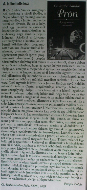Cs. Szabó Sándor-a csurgói Református Gimnázium tanára- sci-fi kisregénye. Forrás Könyvhét Szerző Pompor Zoltán Megjelenés dátuma 2004. 01. 22. Rögzítés dátuma 2011. 03. 27.
