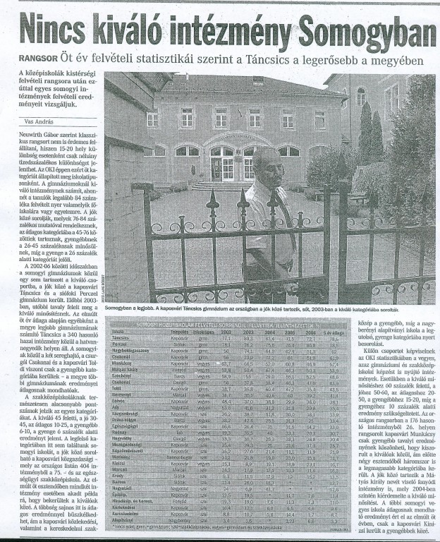 RANGSOR: Öt év felvételi statisztikái szerint a Táncsics a legerősebb a megyében