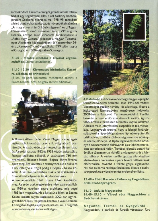 Egynapos programajánlatok : Belső-somogyi kalandozás Csurgó - Kaszó - Nagyatád