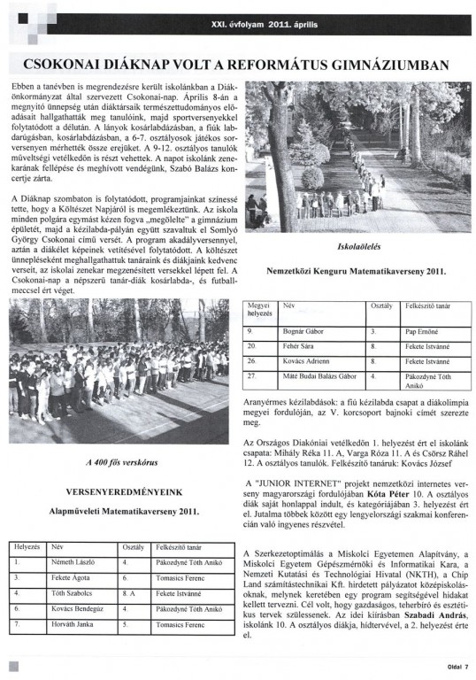 A 2011-es Csokonai-napok programjairól és az iskolai versenyeredményekről olvashatunk a helyi lapban