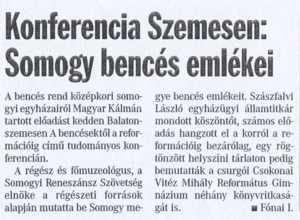A Somogyi Reneszánsz Szövetség szervezésében történészek tartottak konferenciát, melyen bemutathattuk iskolánkat, és annak könyvtárát is.