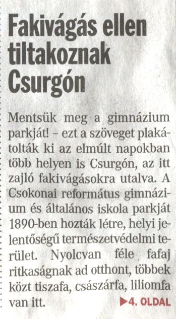 Megújításra szorul a gimnázium parkja. A kivágott fákért aggódnak a Csurgóiak. Forrás Somogyi Hírlap Szerző Varga Andrea Megjelenés dátuma 2012. 01. 24. Rögzítés dátuma 2012. 01. 23.