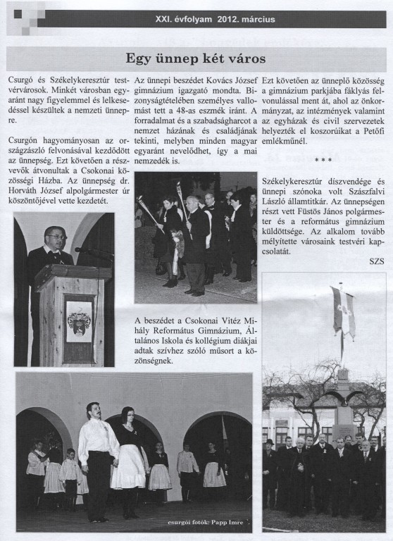 Március 15-én a Csokonai gimnázium igazgatója mondott ünnepi beszédet és a gimnázium diákjai adtak szívhez szóló műsort a művelődési házban.