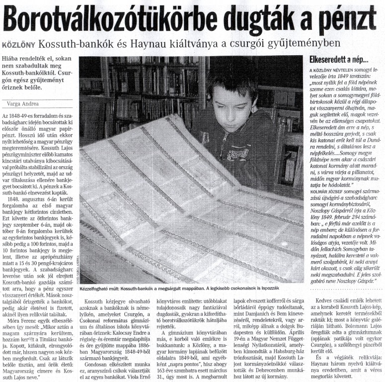 Kossuth-bankók és Haynau kiáltványa a csurgói gyűjteményben