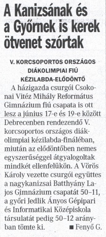 V. korcsoportos országos diákolimpiai fiú kézilabda-elődöntő