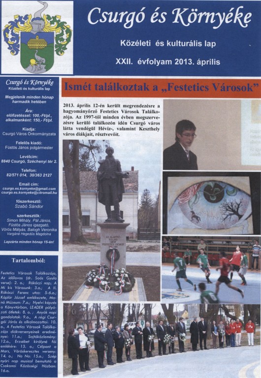 2013. április 12.-én került megrendezésre a Festetics városok találkozója, melyen Csurgó látta vendégül Hévíz és Keszthely város diákjait, résztvevőit.